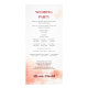 This wedding program showcases a beautiful blend of Japanese and Scandinavian design elements, known as Japandi, with a touch of simplicity and elegance. This wedding design features a vertical line on the left side, which extends towards the upper part of the invite when the couple's names are added. A branch gracefully rests in front of a moon, both depicted in a simple style with warm tones of terracotta and brown red. The background is adorned with a delicate watercolor wash, adding a soft and artistic touch. On the back, the same watercolor background sets the stage for a heartfelt "Thank You" message, completing the overall aesthetic.