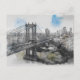 Watercolor Brooklyn Bridge Postcard – New York City Landmark Art