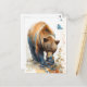Watercolor Brown Bear Eating Blueberries Postcard