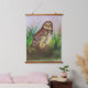 Watercolor Brown Owl with Green Leaves Background Hanging Tapestry