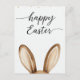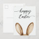 Send some springtime cheer with this minimalist and stylish Happy Easter postcard! Featuring delicate calligraphy and a soft watercolor design, this card includes a peek of adorable bunny ears rising from the bottom, with festive golden dots scattered across the top.