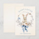 These delicate Watercolor Bunny Flowers Blue Bow Spring Card feature a sweet bunny wearing a soft floral wreath, finished with a adorable blue bow that adds a touch of romance and gentle elegance. The airy pastel palette gives the design a fresh spring feeling, making it both charming and timeless.