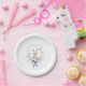 Watercolor Bunny Flowers Blue Bow Spring Easter Paper Plate