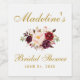 Watercolor Burgundy Floral Gold Bridal Shower Wine Label