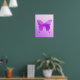 Print with a single, large, watercolor butterfly in shades of deep to soft violet purple on a pastel violet / lavender gradient background