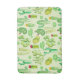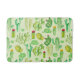 This bath mat, with its biophilic vibe features a variety of watercolor cacti from prickly pear to saguaros on pastel green background.