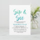 This watercolor calligraphy sip and see invitation card is perfect for a summer boys meet the baby party. The fun and energetic design features a pretty teal green and aqua blue ombre watercolor script font.