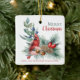 Watercolor cardinal merry Christmas ornament. Beautiful watercolor cardinal perched on a pine branch with pine cones, red berries and acorns. The name and text fields are customisable with your name and greeting, if desired. You can shop for more personalised Christmas gifts in the Personalised Christmas Gift Collection on the Beautifully Abstract store.