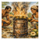 Celebrate the beauty of island heritage with this stunning watercolor artwork featuring a Caribbean man and woman roasting breadfruit over a traditional metal barrel fire. Rich in culture, warmth, and tropical detail, this design captures the heart of village life palm trees swaying in the background, glowing firelight, and the beloved tradition of preparing freshly harvested breadfruit.