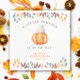 "A little pumpkin is on the way. Celebrate with this baby cartoon pumpkin themed for baby shower party! Watercolor cute cartoon kawaii pumpkin with autumn hat (cap) and fall leaves. On the reverse side of the card are autumn leaves.