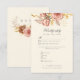 Elegant vertical rsvp Response card with meal choices featuring watercolor roses in brown and blush pink, with an ivory white background and a crest. Please note: The gold embossed accentuated details is simulated, not gold foil.