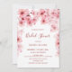 This elegant spring bridal shower invitation features beautiful pink layered watercolor cherry blossoms on a white background.