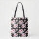 Watercolor Cherry Blossoms Pink Black Tote Bag
