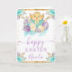 Cute Watercolor Floral Chick in Egg and blue and purple flowers design with gold foil borders and glitter confetti