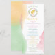 Host a memorable Easter brunch with the help of this menu design featuring Destei's watercolor illustration of a yellow baby chick nestled inside a willow wreath. The wreath is decorated with colorful pastel Easter eggs. The background includes watercolor splashes in light orange, green and pink. The text sections appear in different pastel tones, enhancing the overall pastel theme. The other side is fully covered with watercolor splashes, creating a cohesive and decorative finish.
