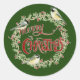 Watercolor Chickadee Birds Merry Christmas Wreath Classic Round Sticker