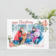 This simple modern watercolor botanical 2-photo holiday card features festive Christmas sprigs of holly, pine, and poinsettia framing the photo on two corners.