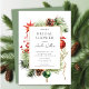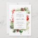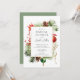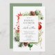 This elegant Christmas bridal shower invitation features a delicate watercolor frame featuring Christmas ball ornaments, pinecones and holly berries. The invitation is perfect for celebrating the upcoming bride during the holiday season. The front of the invitation features the wreath and the bride's name, date, time, and location of the shower. The overall design is festive and sophisticated, and the invitation is sure to impress your guests.