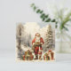 Watercolor Christmas Forest Santa with Presents Holiday Card