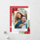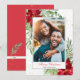 Theme Parties' Christmas greenery holiday card design features hand-painted watercolor greenery and pretty watercolor red poinsettias. Your image is framed simply and the design is accented with watercolor gold speckles and matching holly berries. #Christmas #Holidays #ChristmasCards