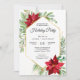 Theme Parties' Christmas greenery holiday party invitation design features hand-painted watercolor botanicals and pretty red poinsettias. The design is framed in a gold watercolor diamond and accented with matching gold design elements. #Christmas #Holidays #HolidayParty