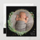 Theme Parties' Christmas greenery holiday photo card design features hand-painted watercolor greenery in a gold circle wreath set on a black background. Your image is framed simply and the design is accented with watercolor gold speckles and matching holly berries. #Christmas #Holidays #ChristmasCards