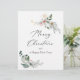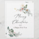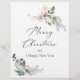 This design features a watercolor illustration of pine and eucalyptus branchlets, pine cones and red berries.