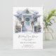 A festive watercolor house sets the scene for your holiday gathering. This snowy Christmas design features a blue front door, lush garlands, and five wreaths—perfect for cosy parties, winter open houses, or seasonal celebrations. Available as a printed invitation, digital download, or both.
