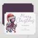 Watercolor Christmas Octopus wearing a Santa hat Holiday Card