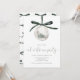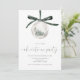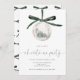 Modern Christmas Party Dinner Invitation Card designed with a Green Watercolor Ornament and Bow.