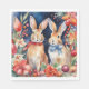 Watercolor Christmas Rabbits Red Gold Floral Napkin