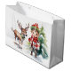 Watercolor Christmas Reindeer and Elf Large Gift Bag