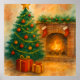 Watercolor Christmas Tree & Cozy Fireplace Holiday Poster
