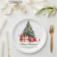 Watercolor Christmas Tree Elegant Script Paper Plate