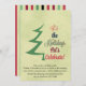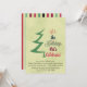 This holiday invitation features an abstract half Christmas tree against a green, watercolor background with the main text written in modern type. Perfect for Christmas and holiday party invitations and holiday dinner party invitations.