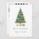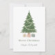 Merry Christmas Watercolor Christmas Tree Photo Personalised flat card. This stunning holiday card is sure to delight. A delicate holiday tree with gifts to the front with a text template for you to add your names and template for a message to the back along with your photograph - Personalised Holiday cards from Ricaso which let you send your seasons greetings in style