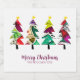 A line of colourful patterned watercolor Christmas Trees with a message saying Merry Christmas. These would be fabulous while entertaining throughout the holiday season and easily customised by selecting the blue personalise it button.
