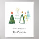 Add a personalised cheer to your walls this holiday season with this beautiful watercolor art print featuring Christmas trees paired with your greeting and family name(s).
