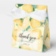 Watercolor lemons and leaves tent style party favour box is closed with a ribbon features your personalised message on the front. MATCHING items in our store