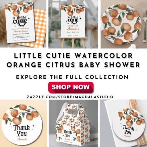 Little Cutie Watercolor Orange Citrus Baby Shower Designed by Magdaline Annie Martin Oming