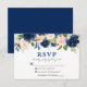 Watercolor Classic Blue Pink Floral Wedding RSVP Card