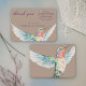 A hand-painted watercolor colourful hummingbird in flight adorns this delicate and loving memorial thank you note card with royal purple font and an antiqued gold background