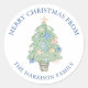 Watercolor Coastal Christmas Tree Gift Classic Round Sticker