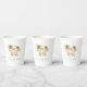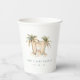 Add a splash of coastal style to your beverage service with this personalised paper cup by Redwood & Vine Design Co. The design features softly painted palm trees, sandy shore, and three surfboards, with event details in a refined serif font. Perfect for tropical, surf, or beach-themed baby showers, these cups provide convenience without sacrificing style. Pair with coordinating coastal stationery and décor for a cohesive, seaside-inspired celebration.