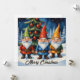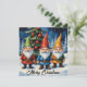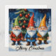 Share holiday cheer with this lively design featuring three funny gnomes dressed in bright red, green, and gold outfits. Standing proudly beneath a decorated Christmas tree, they bring a joyful and colourful holiday spirit to a snowy Scandinavian winter scene.