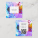 Watercolor Colourful Vivid Textured QR Code Square Business Card