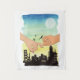 Watercolor couple promise cityscape view, pinky pr tapestry