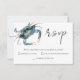This custom wedding RSVP design features a watercolor blue crab motif in the upper left corner with modern handwritten script type face spelling out rsvp in lower case script. The text template is set up for 2 wedding events: a rehearsal dinner and an after wedding brunch. Guests can check which event(s) they plan to attend and indicate the number of guests attending. This design is a lovely choice for coastal weddings with seafood or other nautical themes.