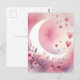Watercolor Crescent Moon, Hearts, Cherry Blossoms Postcard
