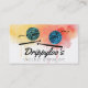 Watercolor style dripping background with crochet hooks and balls of yarn in your choice of colours on this business card for a crochet or yarn crafter.